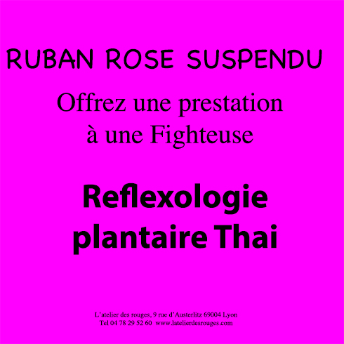Achetez en boutique ou en ligne un bon cadeau RUBAN ROSE SUSPENDU pour la prestation « Fighteuse » de votre choix.