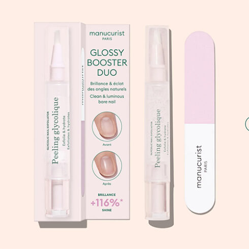 Idéal pour les ongles ternes, le Glossy Booster Duo combine l’action exfoliante du Peeling Glycolique à l’action lissante du Polissoir pour des ongles brillants et éclatants en quelques secondes seulement.